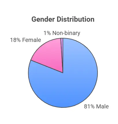 The user base is overwhelmingly male, with 81% identifying as male, compared to 18% female and 1% non-binary. This skew highlights how AI girlfriends are currently resonating most with men—especially those seeking emotional connection, fantasy, or companionship through tech. While female interest is growing, the current landscape suggests that men are driving the majority of demand in this emerging space.