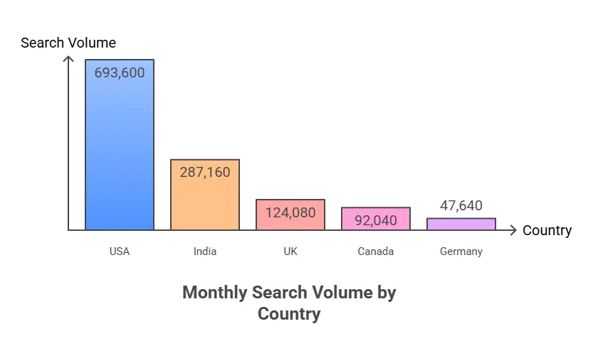 According to internal keyword analysis using Google Trends and Semrush historical data, global interest in the search term “AI Girlfriend” in January 2023 and May 2025, U.S. jumped 315%, while Brazil surged 450% and Mexico climbed 390%, according to Google Ads geo data. In Q2 2025 alone, monthly query volumes hit 125 K in Brazil, 98 K in Mexico, 89 K in Canada, 74 K in South Korea, and 62 K in South Africa.